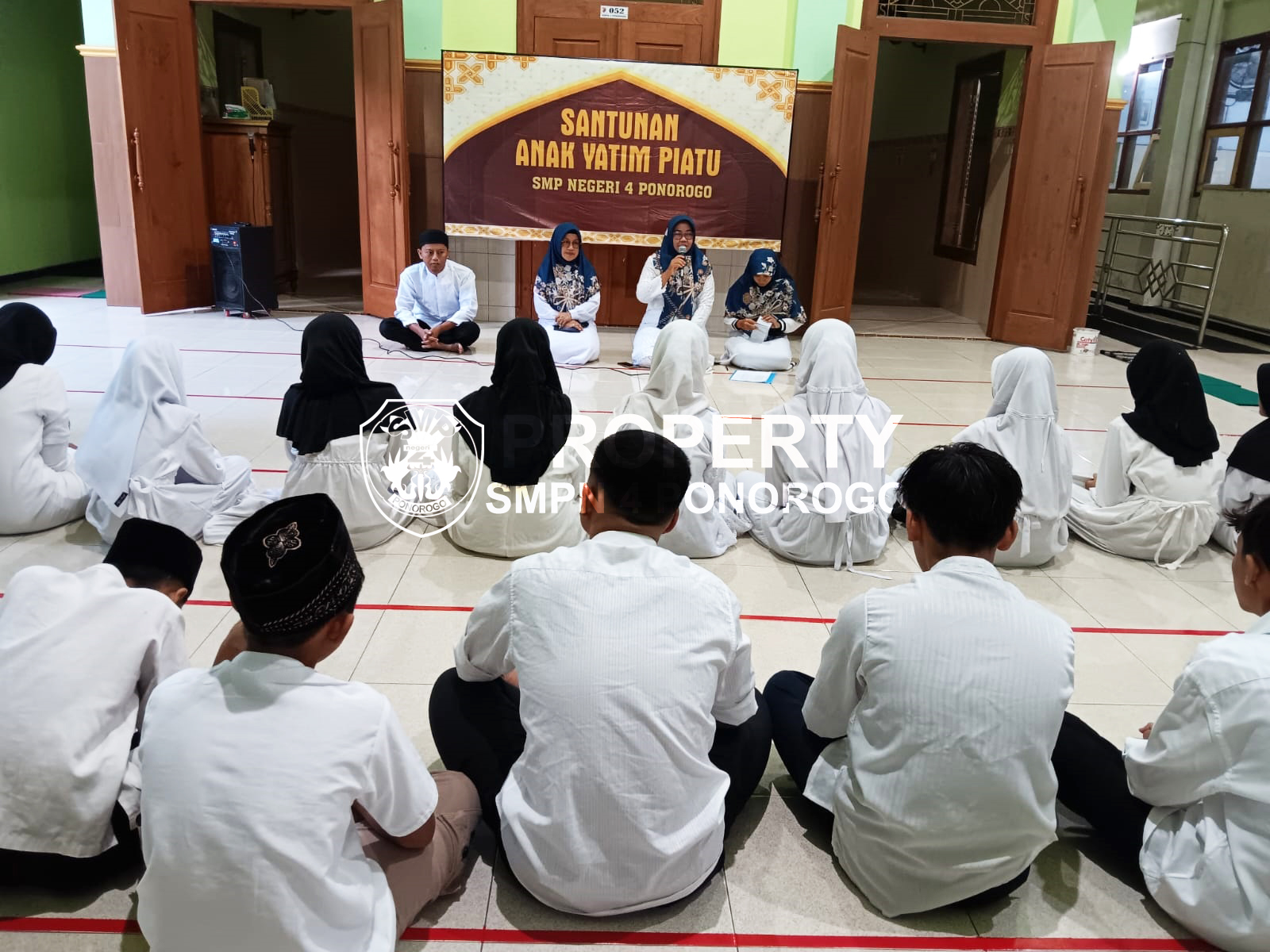 PONOROGO – SMP Negeri 4 Ponorogo menyelengarakan santunan kepada anak yatim piatu dalam rangka memuliakan anak yatim di bulan Muharram, …